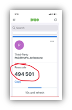 2. Open MFA app on your phone and locate the code associated with your PACER account. |